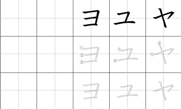 Setiap Katakana mendiami ruang persegi dengan proporsi khusus: