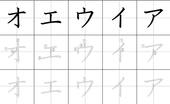 - Perhatikan rasio: Karakter seperti イ dan エ memenuhi ruang berbeda.