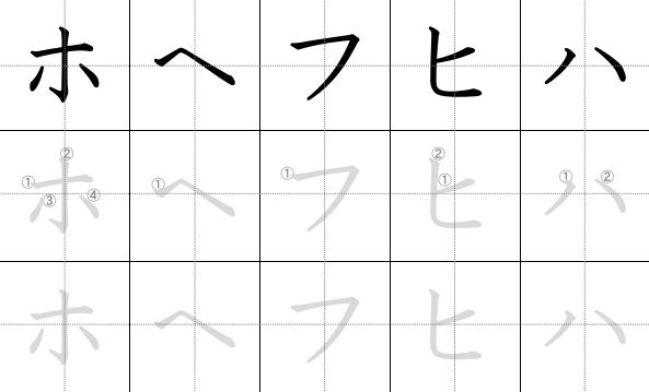 - フ (fu): Lengkungannya halus, bukan sudut tajam. Seperti sapuan kuas.