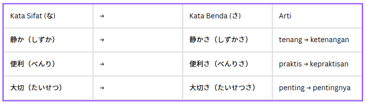 ✅ 2. な形容詞(na-keiyoushi) → tambah さ langsung